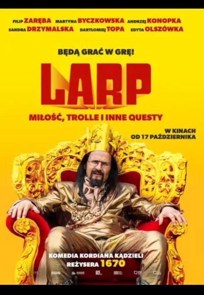 LARP. Miłość, trolle i inne questy to przezabawna opowieść o dojrzewaniu, szkole, pierwszej miłości i pewnym wyjątkowym hobby. Pełna akcji i humoru komedia opowiada o nastoletnim uczniu technikum, niezrozumianym przez rodzinę i prześladowanym przez rówieśników z powodu swojej pasji do fantastyki i… odgrywania elfa w grach LARP (live action role-playing). W obsadzie filmu m.in. Martyna Byczkowska, Andrzej Konopka, Bartłomiej Topa, Edyta Olszówka, Maciej Bisiorek, Agnieszka Rajda i Michał Balicki. W roli głównej - debiutujący na wielkim ekranie Filip Zaręba.
